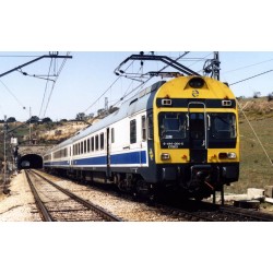 HE2022 RENFE, automotor eléctrico 444-011, decoración azul/blanca, ép. V